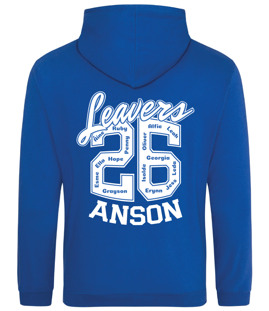 Leavers 2026 Hoodie with white back print. Choice of hoodie colours available.