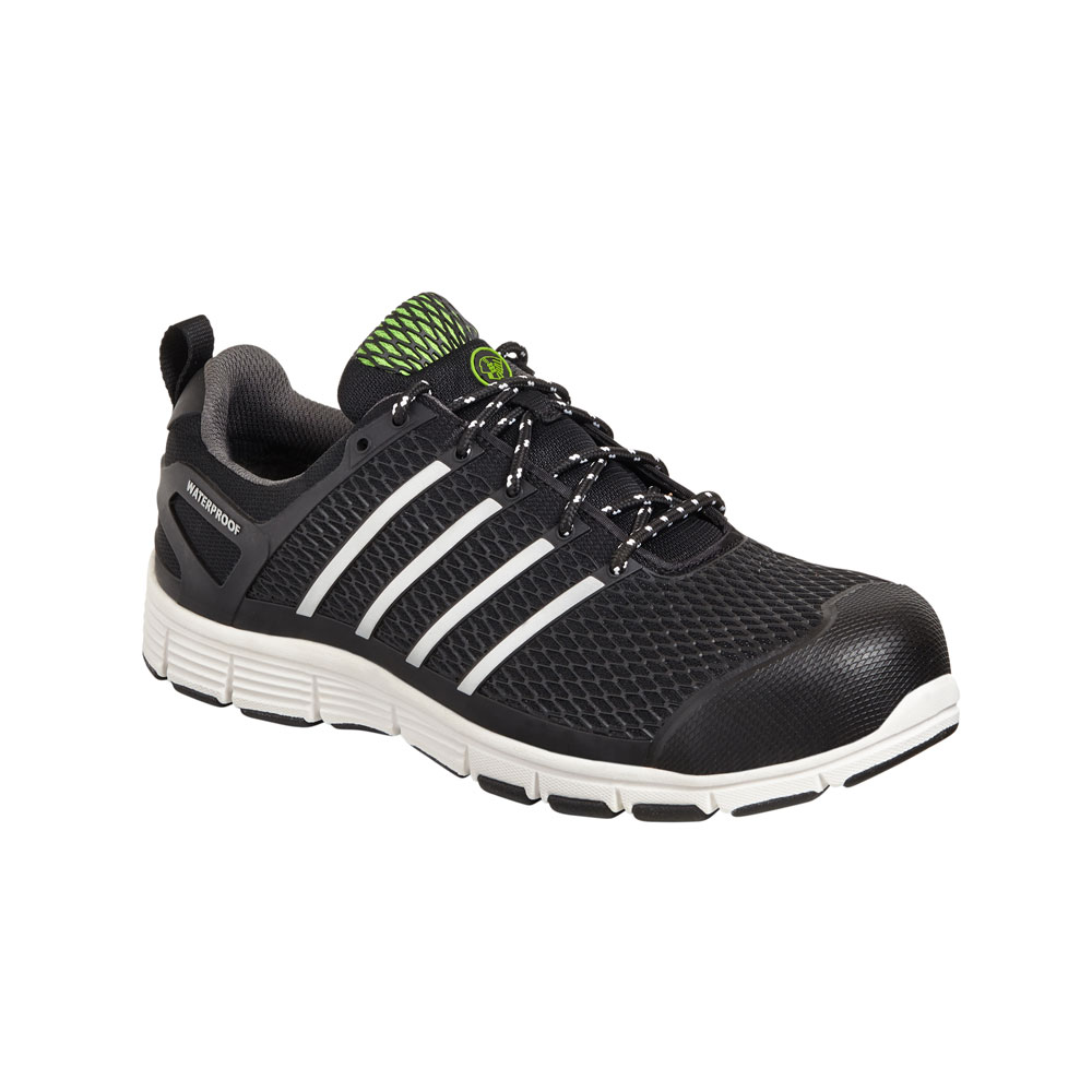 A stylish modern waterproof safety trainer with breathable inner lining and polyurethane upper. The aluminium toe cap and composite midsole make this trainer very lightweight.