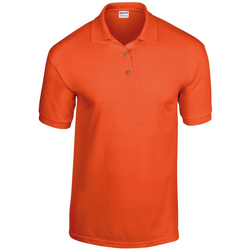 DryBlend® technology delivers moisture-wicking properties. Contoured welt collar and cuffs. Tearaway label. Clean finished placket with reinforced bottom box. 3 woodtone buttons. Twin-needle bottom hem.