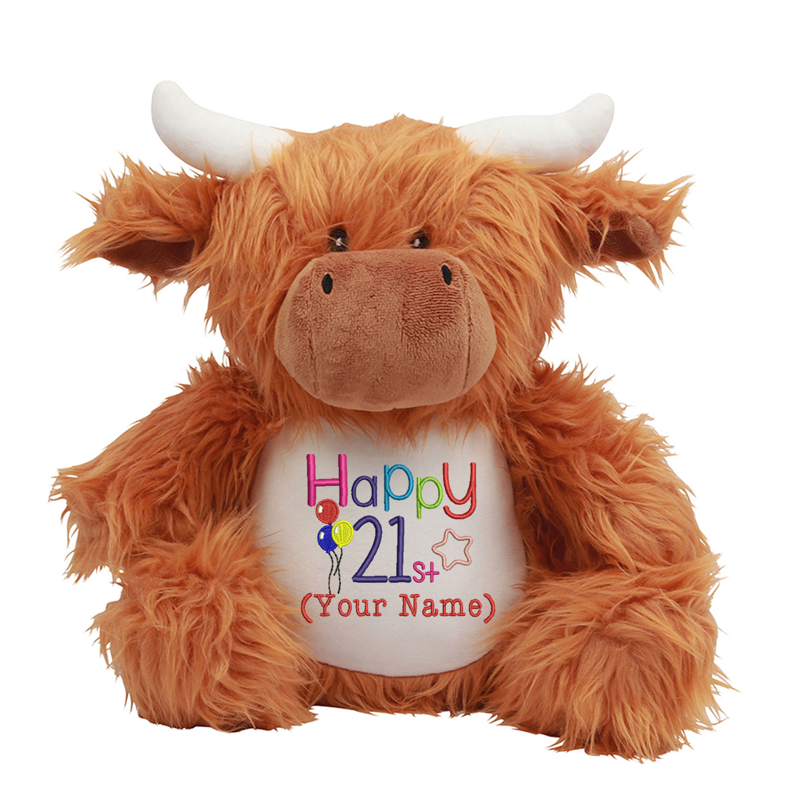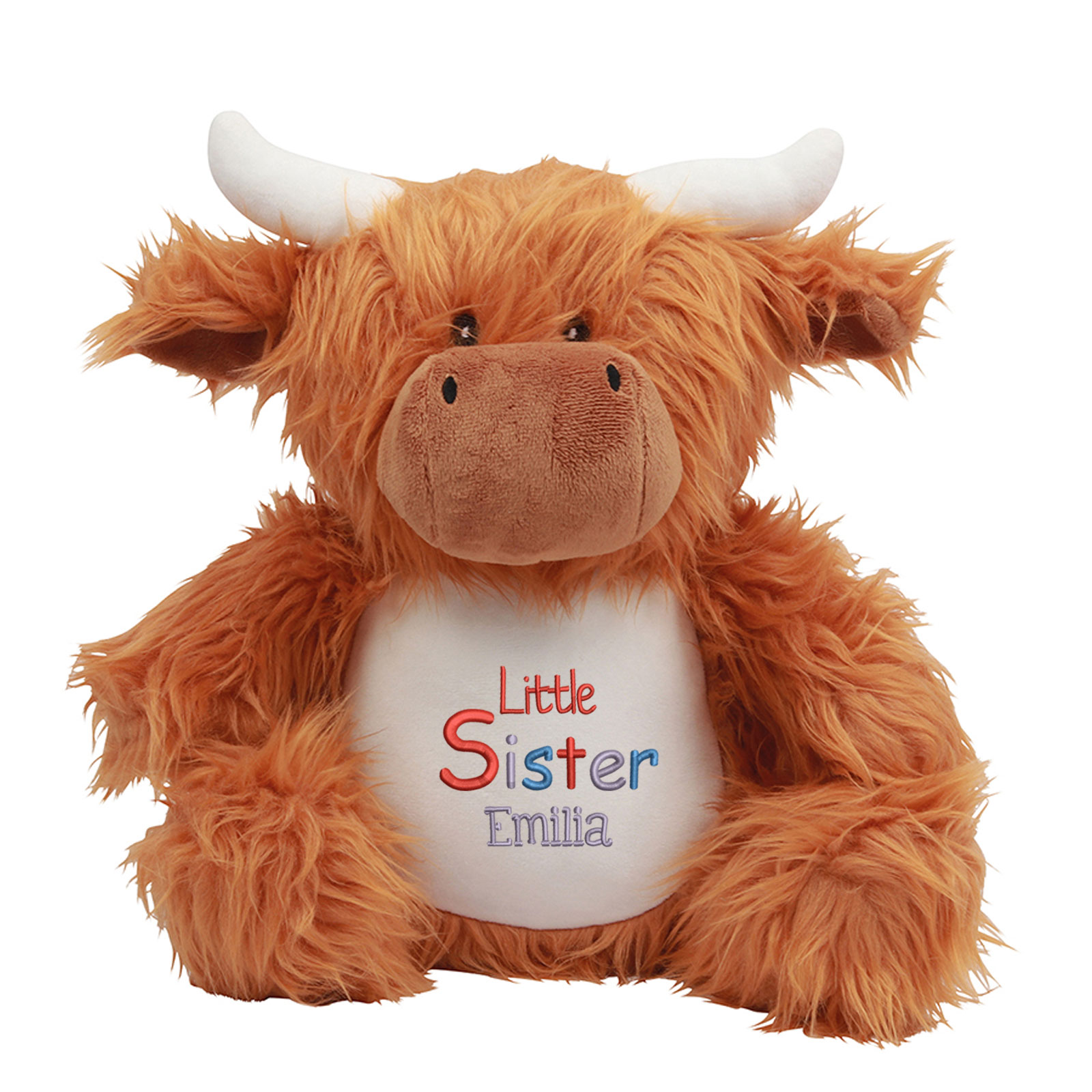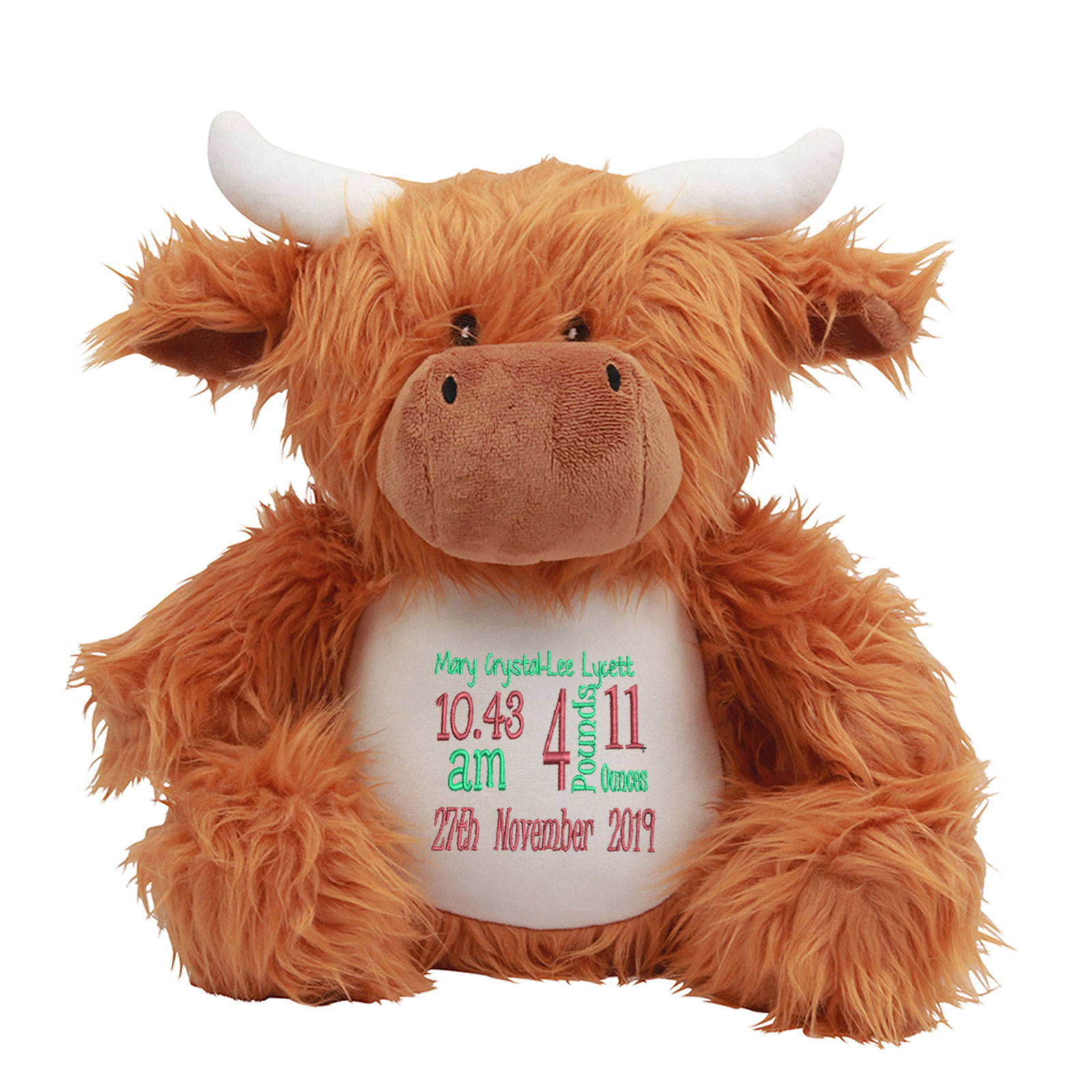 Large 37cm Personalised Cute Soft Plush Highland Cow Embroidered with your Name