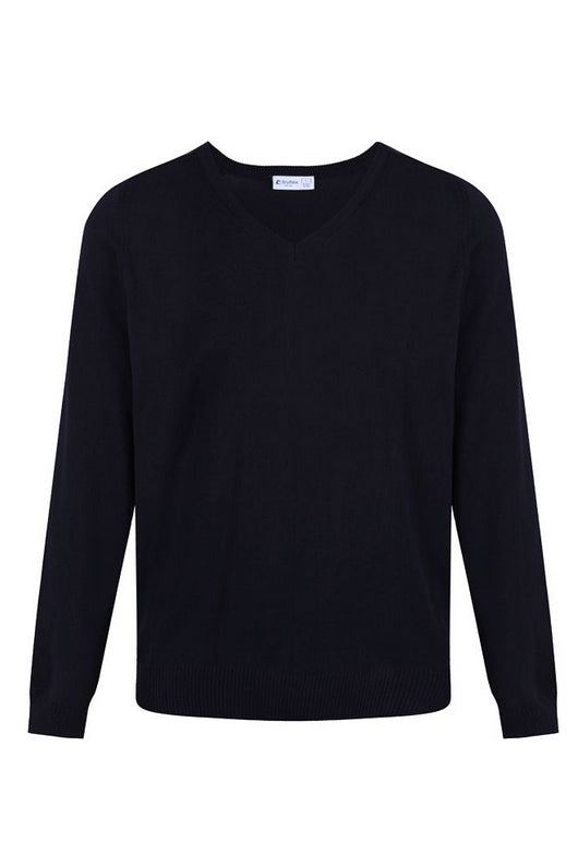 Our 100% cotton standard fit v-neck jumper is soft and warm in a durable low pill yarn.  Elastane is used in the cuffs and welt to help retain shape and keep it looking newer for longer.  It is machine washable and can be cool tumble dried making it low maintenance.