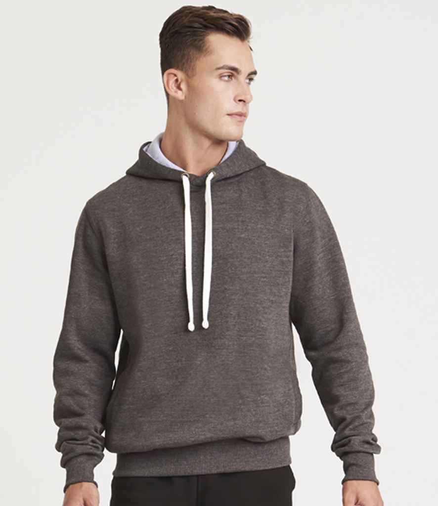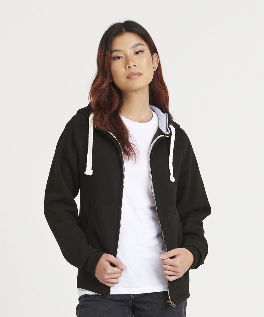 Double fabric hood with contrast inner.