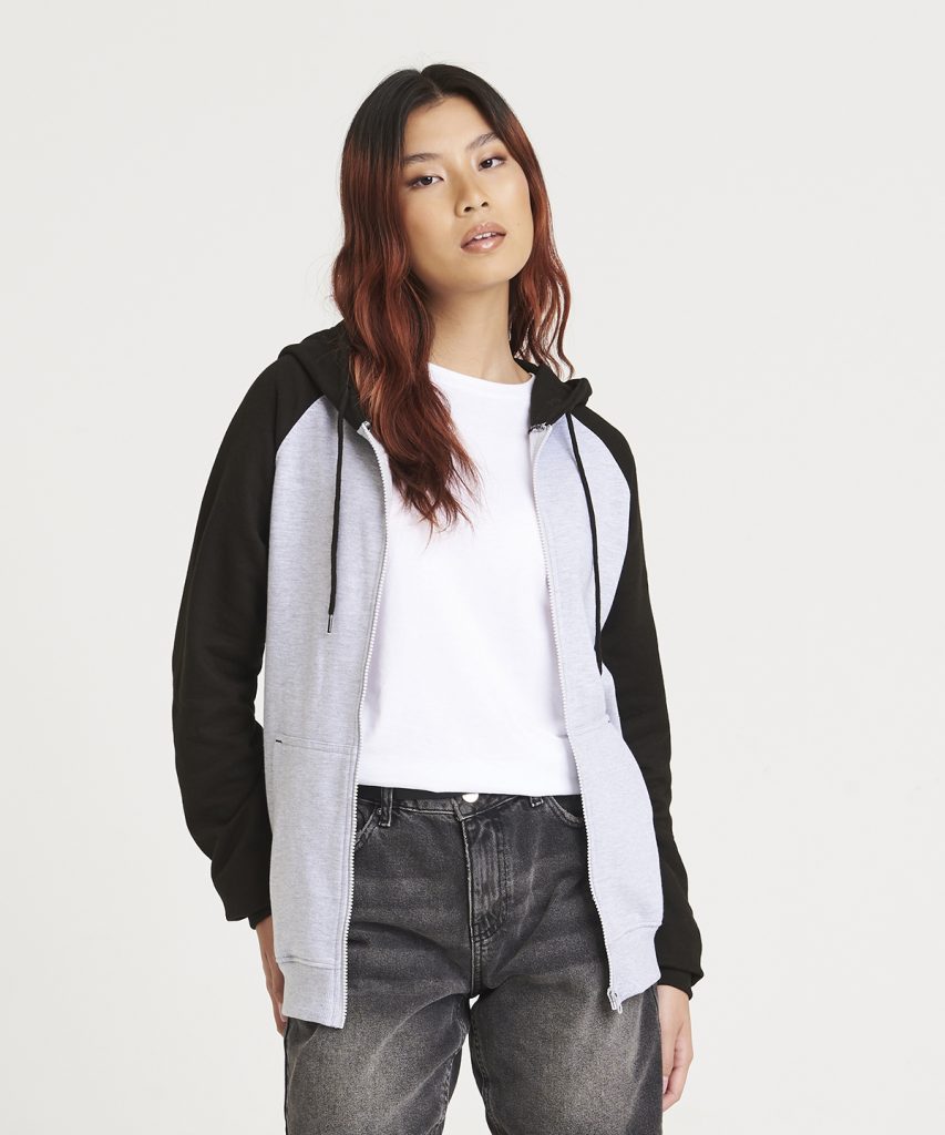 Ribbed cuffs and hem.